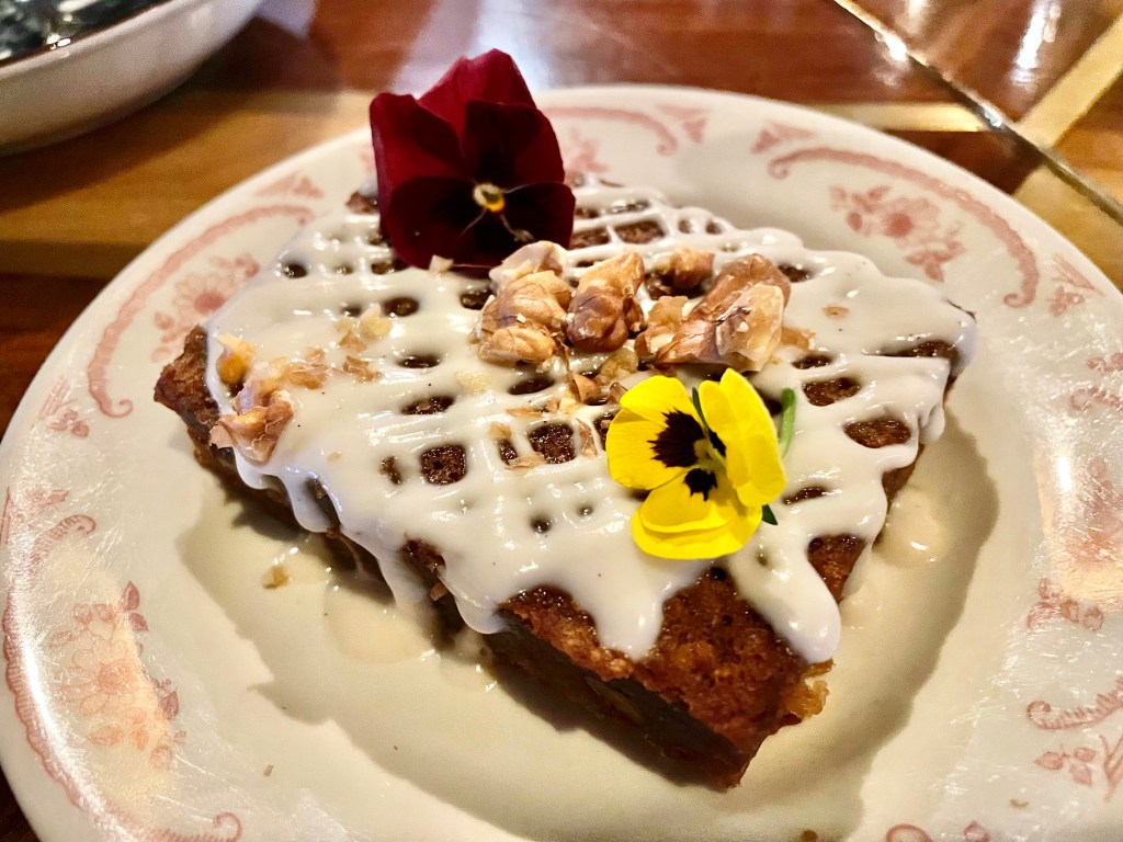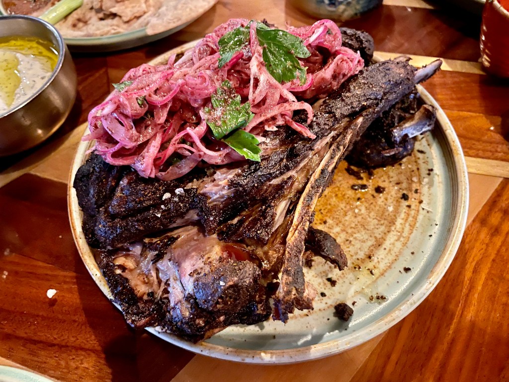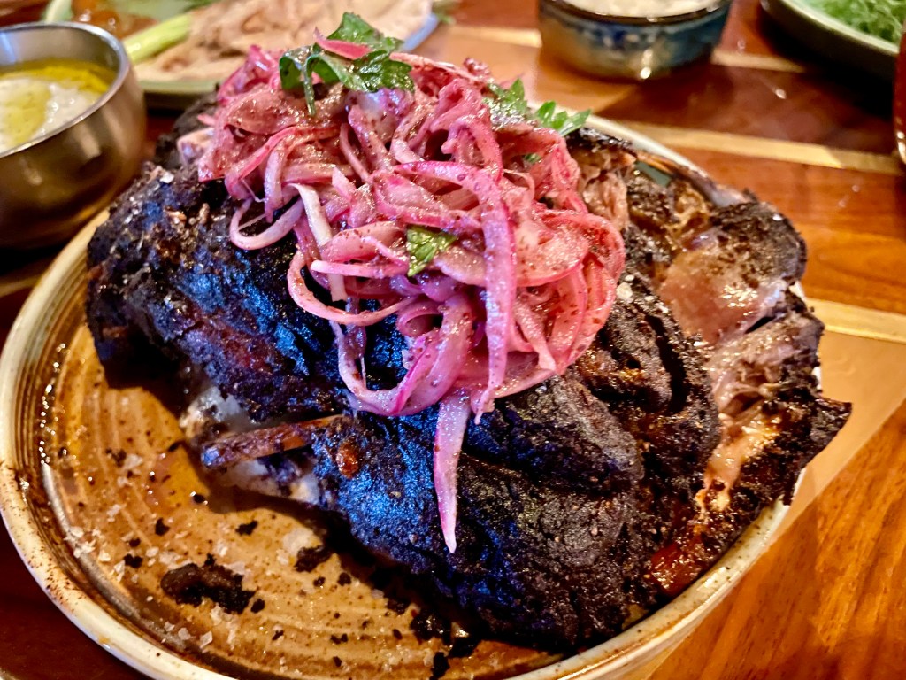 Next, you will have some more appetizer-sized dishes prepared straight from the fire. We just couldn’t stop diggon at the smoked beef and lamb koobideh and the chicken shish taouk, both so pleasantly smoky that you will start to wonder why not all meat dishes are prepared this way around the world. For the main dish on the center plate, we sent with the lamb shoulder with Syrian seven spice, sumac onions and herbs. We’ve had some fantastic lamb dishes while navigating the DC restaurant scene, and this was one of the best we had tasted. There was no gamey flavor of the lamb, and the texture of the meat enhanced by fire was just exceptional; we were starting to run out of room halfway into the meat and ended up taking the rest home and it was still fantastic when we ate it again the next day. The desserts of Turkish coffee chocolate pudding and apple banana walnut cake were solid, too.