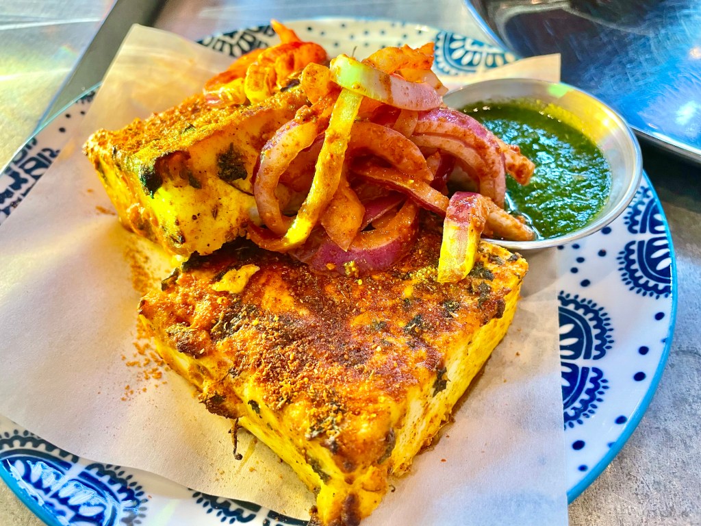 If you think an everyday Indian take-out curry is too sweet and geared toward Americans who may not be as receptive to the spicy flavor, Dhamaka will show you how the real Indian cuisine is done in its main dishes. Faithful to its “unapologetic Indian” slogan, the restaurant does not compromise on its authenticity and heat in the interest of making its food popular to the wider audience. By the time we started digging into the main dishes of murgh kofta, a playful take on Scotch egg of chicken mince with egg in the middle, and lamb shank nihari, a sizable mutton in a broth of red chili, with a friend who joined us, we were profusely sweating, in an exhilarating way (Jun and I were relieved that our friend’s wife, who can’t take even moderately spicy food, was unable to come out for the dinner). It was not just the fiery flavor of both dishes that caught our attention; the texture of the minced chicken was also spot-on, and the lamb to our pleasant surprise didn’t have the gamey quality typically associated with the meat that could’ve otherwise undermined the brilliant dish. After all that blissful food, the lone dessert of chhena poda, a cheesecake-like plate of malai paneer, was a perfect antidote to calm down the spicy sensation.