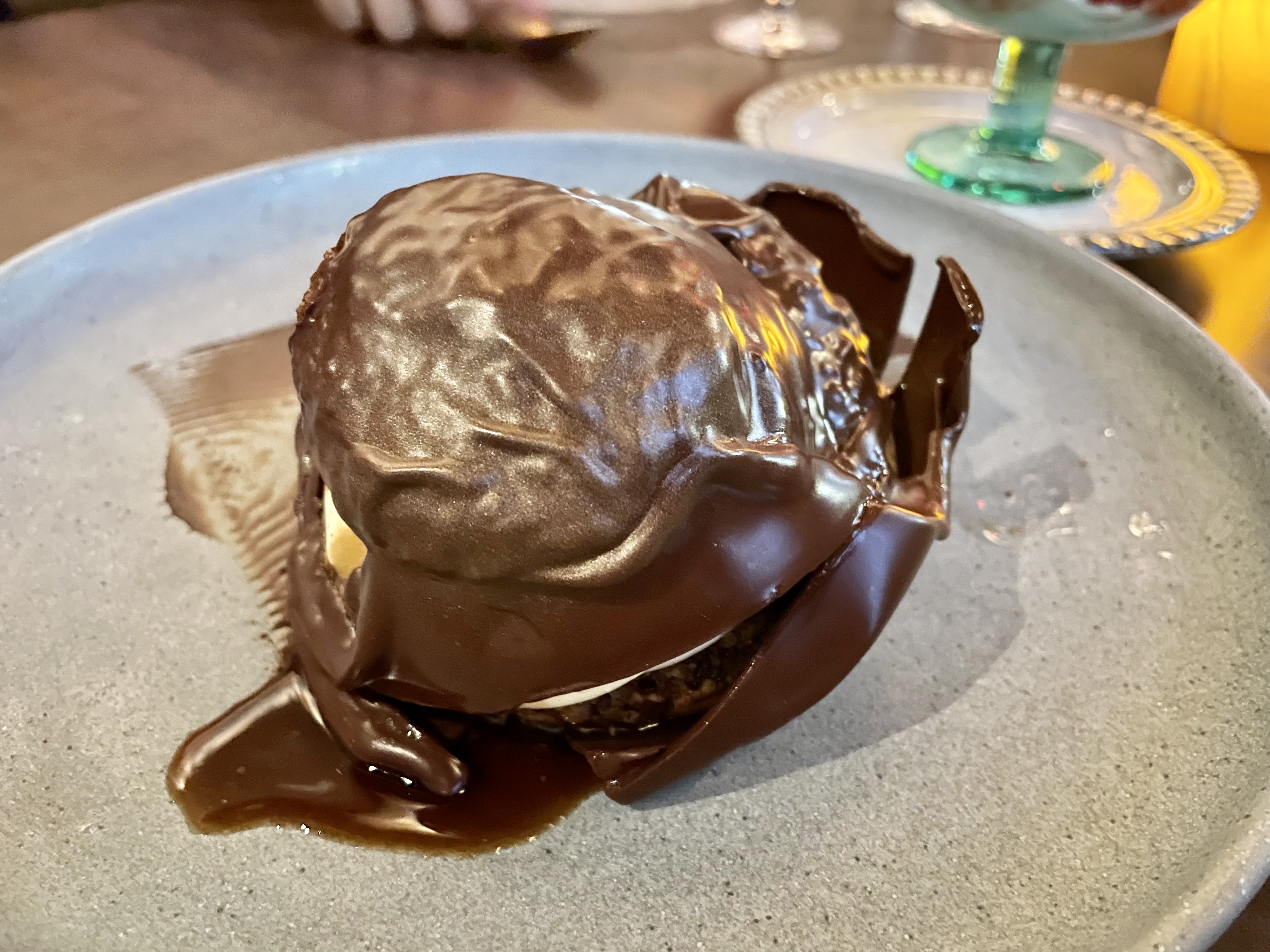 Neither did the pastas, including the much-hyped lasagna with 40 layers and short rib sugo. Certainly, the lasagna (at a rather pricey $36) looked beautiful and did have hearty feel to it, but I was somewhat underwhelmed by the relative lack of textural appeal. The massive whole grilled branzino with fennel and tomato was good but we had better cooked branzino elsewhere paying less than $74 the restaurant charged us. Even for the desserts, the presentation exceeded taste; for all the stunning flaming preparation, you would think the tiramisu would be magnificent but it turned out to be surprisingly pedestrian (although Jun, a tiramisu aficionado, did appreciate it), as did the playfully plated panna cotta with ricotta that wasn’t quite as delightful as it looked. While we were sharing the colorful soft serve of vanilla oat milk ice cream and Mandarin sorbet, all of us in the party were left wondering how the restaurant could have offered a better experience.
