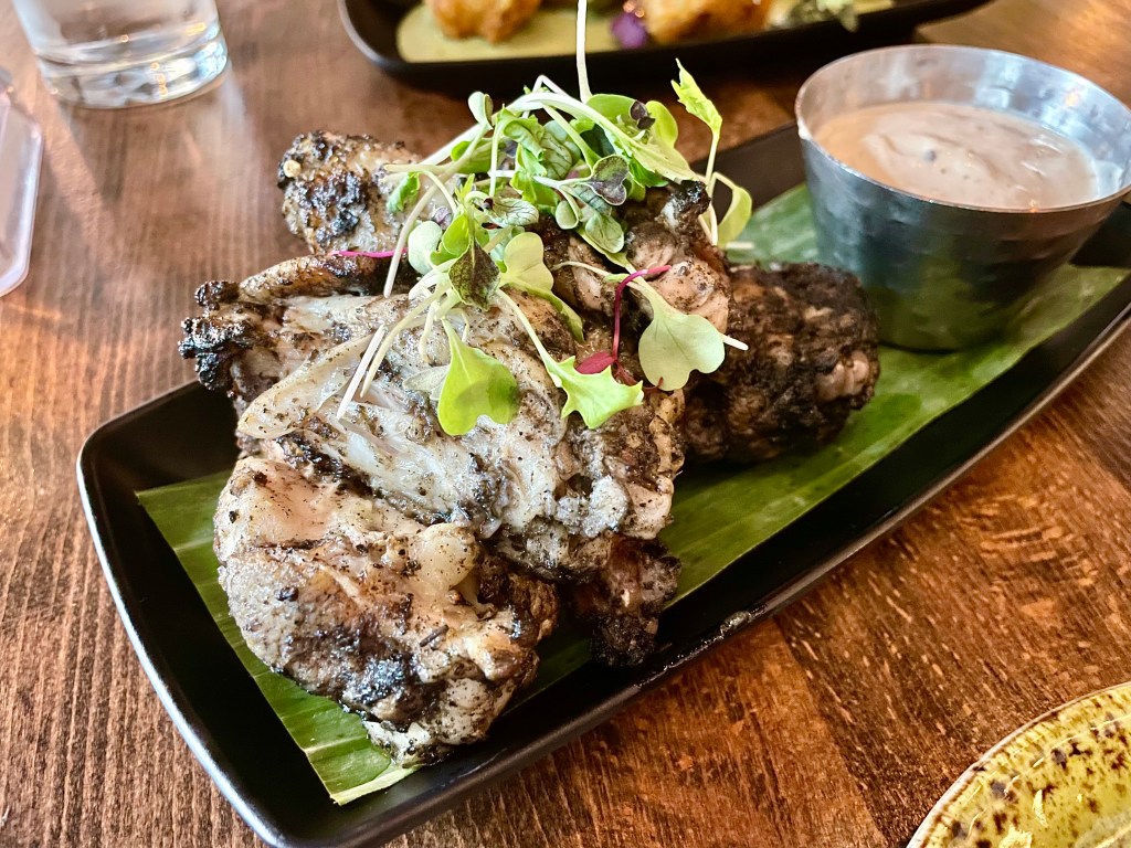 I admit we are not experts in the Caribbean cuisine, which has rich heritage with diverse influences from West Africa, East India, Europe and elsewhere in the world combining into a fascinating melting pot of food. That does not mean, however, we don’t have the sense to appreciate when a food is delicious or not. We didn’t expect the salt-fish fritters (accras) to have the surprisingly tough texture outside; if that is the way the fish was to be battered and fried in the Caribbean tradition, so be it but it was hard to tell whether the way the dish was prepared was intentional. Same goes for jerk wings, supposedly marinated for 12 hours and smoked over Jamaican pimento wood but somehow lacking the smoky flavor or the crispy texture we were expecting.