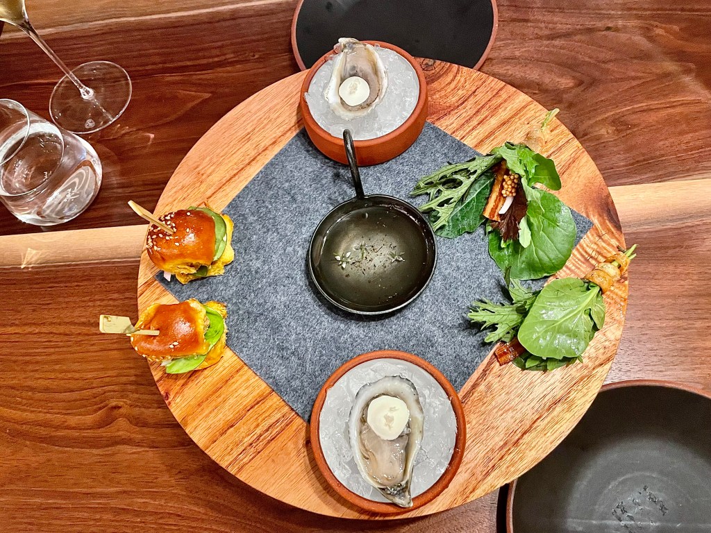 It’s not often my wife Jun and I visit a restaurant, then the restaurant renovates its space and revamps its menu and we follow up with another visit shortly thereafter to check out the transformation. After our enjoyable meal at The Dabney in August, the restaurant closed to do exactly that, with a longer tasting menu (currently at $170 per person) with the same mid-Atlantic theme and sensibility and many of the seasonality-driven dishes coming from the wood-burning hearth at the center of the kitchen. So when a spot opened up in September around Jun’s birthday after I put my name down on a waitlist, I felt compelled to take advantage of it. We are happy to report that we liked The Dabney 2.0 just as much, if not more, than the original iteration of the restaurant.