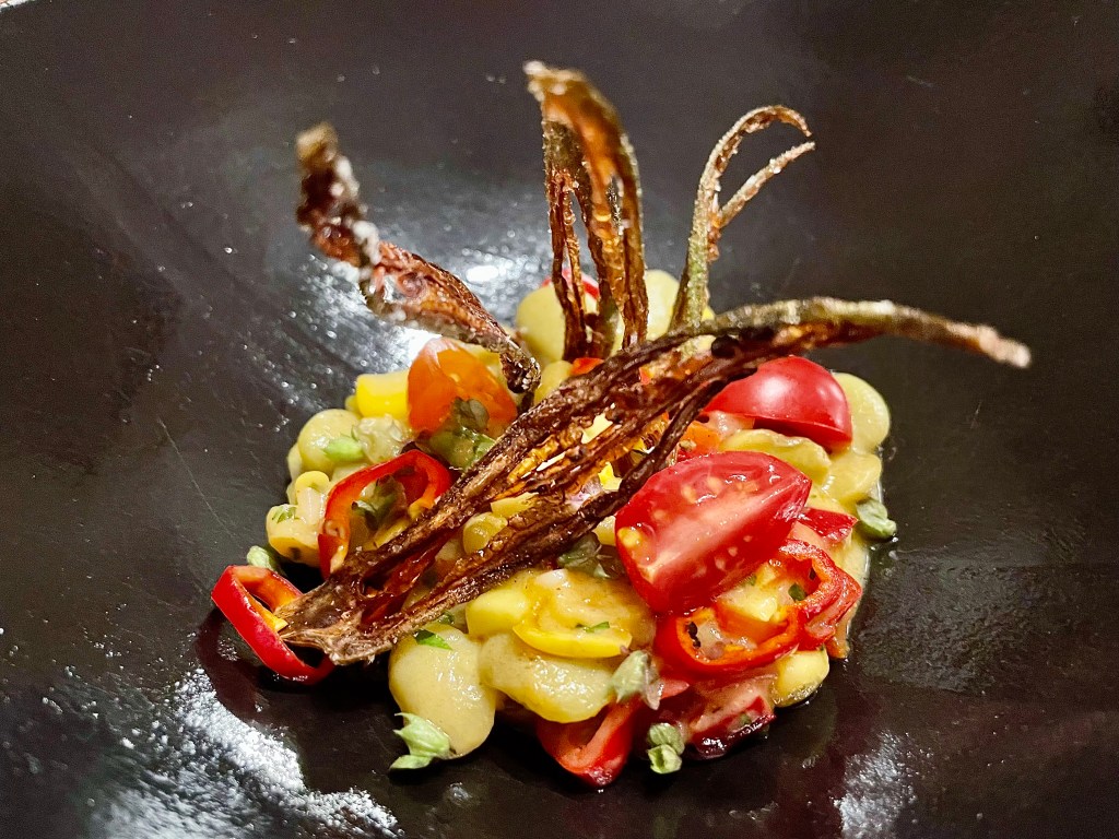 Similar to the original menu, the longer tasting menu from the transformed Dabney started with a few delicious bites, starting with the Appalachian apple stack cake with foie gras inside and then followed by an assortment of oysters, kilt greens with preserved ramp and smoked bacon, and the Dabney classic of Chesapeake catfish in sweet potato bun. Each of these bites had distinct flavor and texture and I could tell the fresh ingredients were very carefully sourced and the kitchen is not taking it easy on any single dish. The Maryland blue crab with royal osetra caviar and crimson apple was another standout appetizer, and just like the restaurant impressed us with its summer vegetable salad last time, the late summer succotash consisting of butter beans, corn, tomatoes and okra gave a lasting impression, particularly with the surprisingly spicy kick.