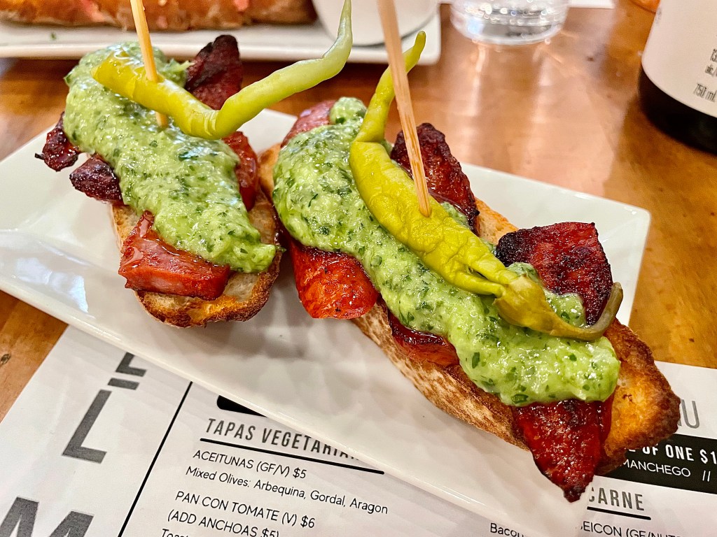 The food from Brazil-born chef George Rodrigues (who honed his skills at the DC’s Penn Quarter branch of Boqueria) is a very deft mix of traditional and modern. There is no groundbreaking dish on your table, but after you take a bite of the classic pan con tomate, you will instantly realize that El Mercat is not just another neighborhood joint. Our favorite tapas during our visits was the chorizo a la plancha, with delicious chorizo on top of toasted bread that will be a treat for any meat lover. The gambas al ajillo was also quite delicious with its crunchy shrimp in aromatic garlic broth; on the other hand, I wished the octopus in the pulpo con patatas came with a bit more size and texture.