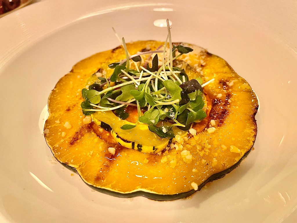 When we got the welcoming snacks at Xiquet, my wife Jun was pleasantly surprised to see goose barnacles in the aperitivos. It’s not often you see these crustaceans at a restaurant. Another surprise was the assortment of flash cards for each dish, similar to how Atomix had been dazzling diners for years. Each flash card thoughtfully described chef Danny’s inspirations behind the corresponding dish, oftentimes sharing his memory in Valencia. The first dish that came after the aperitivos was fresh scallop from Hokkaido, Japan, accompanied by Ossetra caviar and blood orange that gave refreshing flavor. Even if you are not a vegetarian, you would be won over by a vegetable dish like the wonderfully fire-roasted heirloom squash with romesco. Called rèmol in Valencia, the turbot also beautifully displayed its rich flavor with the help of classic beurre blanc sauce. While Valencia is known for the famous paella, Xiquet’s rice dish was more grounded in the method of Alicante nearby, accompanied by herb-braised rabbit. It was not surprisingly one of my favorite dishes of the night.