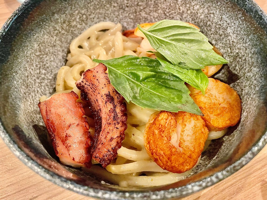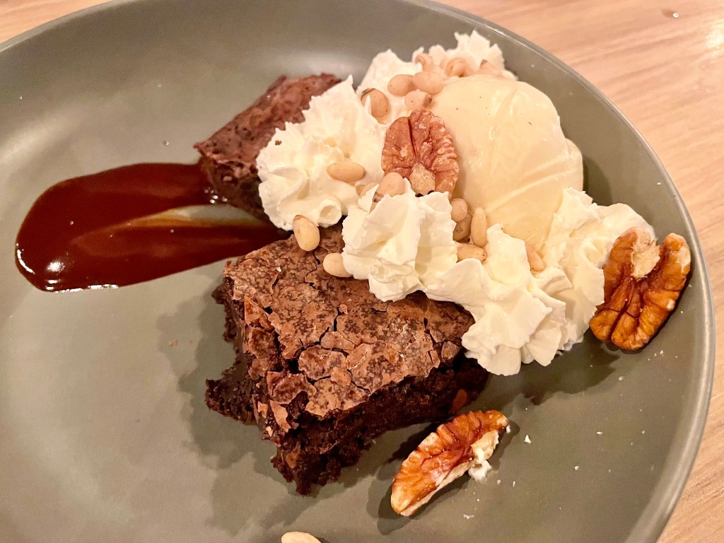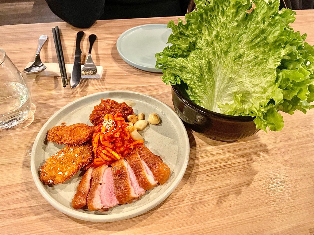 We were hoping that the five-course tasting menu from the kitchen led by chef Justin Ahn (a relative bargain at $70 per person at the time of our visit) would show a nice combination of traditional and modern in our native cuisine. What we didn’t expect was that the menu was geared a lot more toward pan-Asian than Korean. Yes, we grew up eating fried snacks, but the lamb croquette with mushroom and parmigiano was unmistakably Italian in its essence, even though it was actually quite delicious. While the second dish of green curry noodle with an assortment of seafood was also capably executed, it brought us memory of our college years when we first countered Thai food instead of our childhood when we would’ve had Korean noodle dishes such as kalgooksoo. Things started to go downhill from there. While Jun and I both love duck breast, we weren’t sure it was the best match to the lettuce ssam where we would normally have pork or beef. The worst dish was the last savory course, a version of Hainanese chicken rice that didn’t really have anything Korean in its plating or flavor. It was a very puzzling decision to put this on the menu at a Korean restaurant. The dessert of the night, a chocolate brownie with vanilla ice cream, was solid on the other hand.