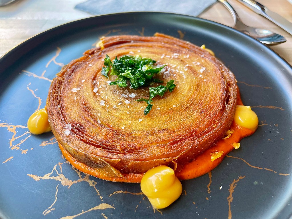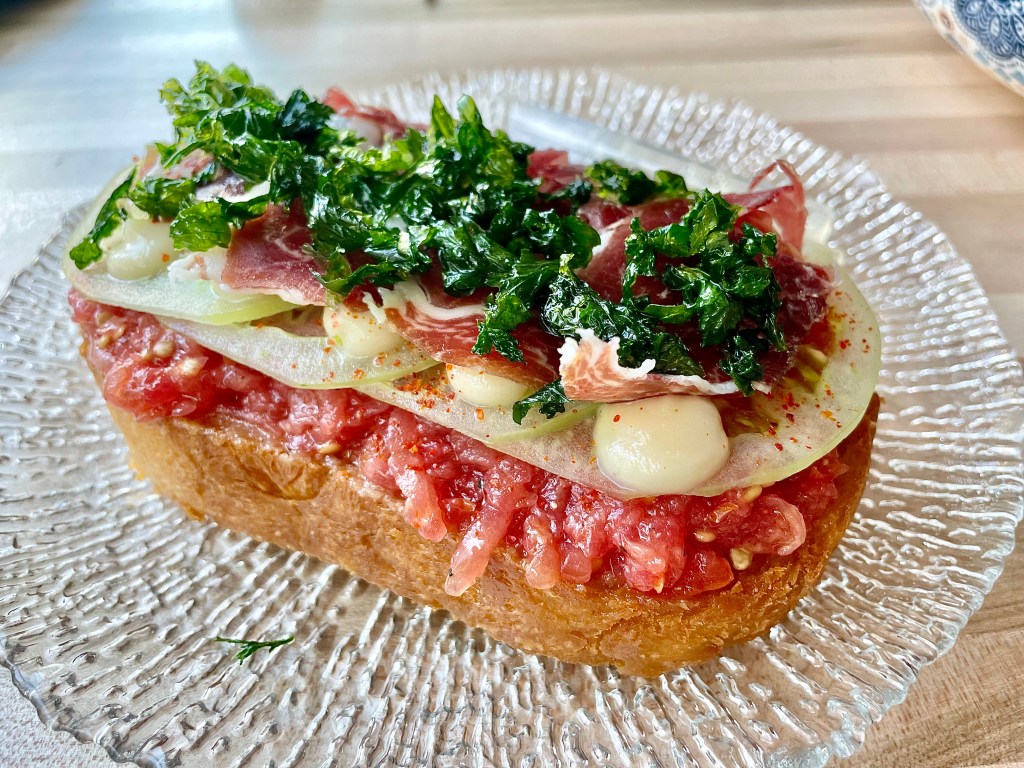 What would Spanish food with Latin American twist look like? The playful display of the dishes with chef Enrique’s touch immediately caught our attention at first. For its version of pan con tomate, The Saga has multiple layers of different kinds of tomatoes on top of house-made sourdough (you can also add jamon ibérico on top for extra charges). For “not traditional” patata brava, you get to try a deconstructed version with thin circular layers of potatoes over romesco sauce. The popular gambas al ajillo also gets a new Latin American treatment with gulf shrimps from Mexico and dried Calabrian peppers. The starter dishes Jun and I shared together were mostly solid, save for perhaps croquetas (one with cheese and another with cod instead) which I thought were surprisingly pedestrian. I just wish the restaurant brought these dishes one at a time instead of bringing them altogether; by the time we were more or less done with one dish and ready to move onto the next, the temperature of the latter was already past its optimal level. Perhaps a bit of a kink in the execution that the kitchen should fix going forward?
