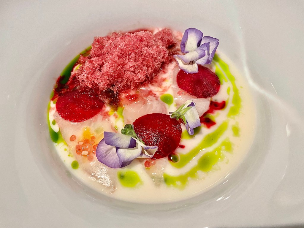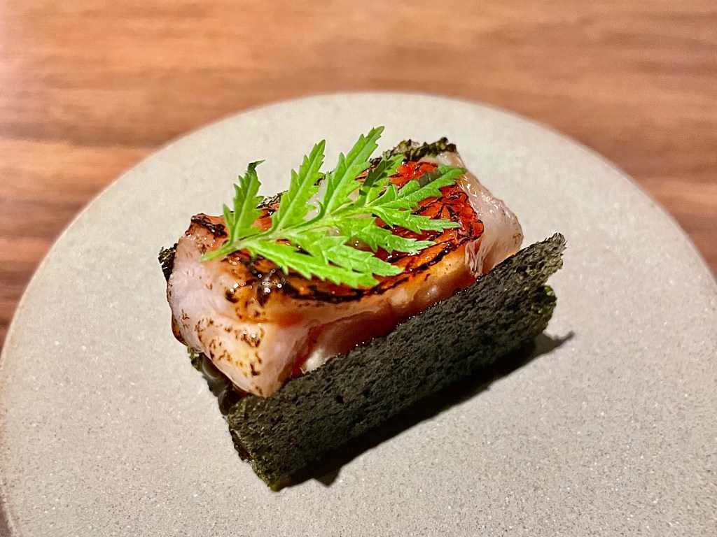 Jun remarked when we sat down how she could see chef Franco’s menu had evolved from a more classically French cuisine to one that is more globally influenced. Maybe the collaboration with chef Hiroyasu Kawate at Florilège further inspired him to introduce new ingredients and techniques outside the previous boundary in which he was operating. That gradual yet impactful evolution, we both agreed, was executed with remarkable precision and ingenuity, starting with delicious bites like kinmedai fish in seaweed wrap like a playful take on sushi or artichoke-flavored pastry with Hokkaido sea urchin (which we gladly added as a supplement on top) that Jun was absolutely in love with. Last time we had visited the restaurant during the Memorial Day weekend, Jun also absolutely enjoyed a stunning dish of cuttlefish and quinoa with leche de tigre sauce and we were both glad it was back again during this meal. Instead of a standard bread menu, the restaurant surprised us just like our last visit with naan and tofu-based paste.