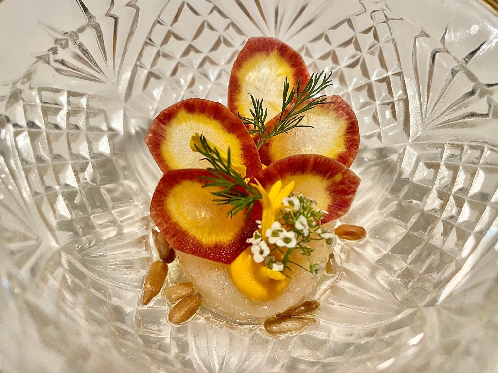 Getting a reservation at n/naka will require a Herculean level of tenacity. The reservation for each week (the restaurant is open from Wednesday through Saturday) opens up about a month in advance at 10 a.m. PST on Tock; I literally sat in front of my computer at work and turned on an alarm clock before frantically hitting the Tock link. After I joyfully booked the reservation, I checked back on Tock and saw all the reservations in the same week were already gone. The serene and not pretentious atmosphere of the dining room was another plus to our experience, and we were pleasantly surprised to meet with chef Niki herself who came out toward the end of our meal to greet us. So, was n/naka one of the best meals Jun and I had ever had in our culinary journey? That is a bit more difficult to say; it was most certainly an outstanding meal but Jun kept wondering whether we had been too spoiled from all the finest dining experiences we had encountered to appreciate what n/naka brought to the table. It also didn’t help that the Burgundy red wine that we ordered turned out to be rather aggressive and wild and therefore was not a great pairing to our dinner. If you are a Japanese food lover, n/naka is a worthy destination to check out; whether it changes your life and your culinary outlook, I will have to defer to your subjective experience.