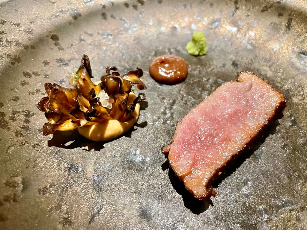 What makes n/naka stand out from any other kaiseki is chef Niki’s brilliant approach to the cuisine by blending Japanese traditions with seasonally focused California influence. Just try a bite of exceptionally fresh Japanese scallop in a beautiful display with autumn carrot and sunflower seed in the appetizer course (sakizuke), and you will know this is no ordinary restaurant. Every dish at n/naka felt like a beautiful piece of art; for instance, Jun had a hard time getting started on the zensai assortment of fig tempura, wagyu beef curry, lobster and other appetizers because each dish looked so pretty. Some of the dishes that I really liked include an aromatic bowl (owan) with kinmedai fish and kabocha dashi, another bowl (mushimono) that came later with clam and dashi made with nori and yuzu, and, not surprisingly, an absolutely juicy and delicious piece of wagyu beef with fig miso and charcoal-roasted maitake mushroom.