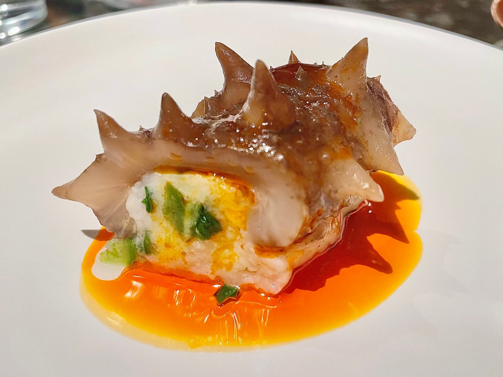 Of course, no culinary journey would be complete without our trip to Atomix. We only managed to visit the restaurant once in 2023, and we still marveled at the consistent excellence coming from one of the best restaurants in the world not to mention New York City. The highlight during our trip to Atomix in May was this beautifully plated sea cucumber with shrimp stuffing and gochugaru (Korean chili powder) oil. Sea cucumber is considered a delicacy in Korean cuisine, yet I didn’t grow up liking it because of its slimy texture. If I had had a sea cucumber like what Atomix put together in my childhood, I probably would’ve called it one of my favorite seafood dishes. The combination between the sea cucumber that was prepared to emphasize chewy texture and shrimp stuffing was pure genius, with the addition of gochugaru oil that was meant to be playful take on a popular spicy seafood noodle soup jjamppong.
