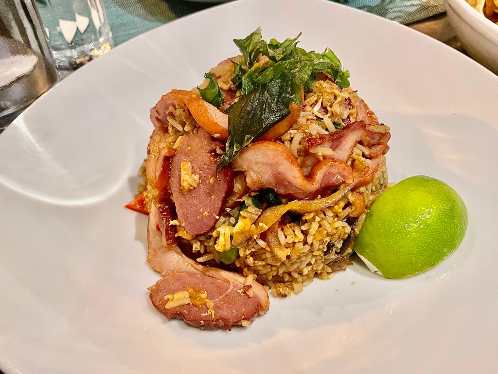 The food from the female chef Jeeraporn “P’Boom” Poksupthong is not afraid to showcase the Northern Thai region’s culinary tradition. Many of the dishes may look somewhat familiar in concept at other Thai joints, but you wouldn’t find the high level of execution from Baan Siam. For a successful meal at the restaurant, I would recommend looking over seasonal specials where we picked two of the four dishes we shared together. Jun was very appreciative of the spicy-sweet calamari with its wonderful mix of spicy and sweet chili sauce flavor that was quite appetizing, which also applies to the description of crispy lotus root and grilled shrimp salad. One dish that we frequently order at a Thai restaurant to determine its quality is the beloved khao soi with egg noodles and chicken. While we wished Baan Siam had a bit more chili paste-based broth, it was nevertheless delicious with deceptively spicy kick. From the seasonal specials section, we also picked basil fried rice with smoked duck which turned out to be a wise choice as we really enjoyed the way fried rice worked together with duck in chili garlic sauce to reveal an addictively rich dish. If this dish is still on the menu on your visit, I highly recommend you order it.