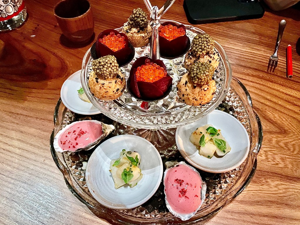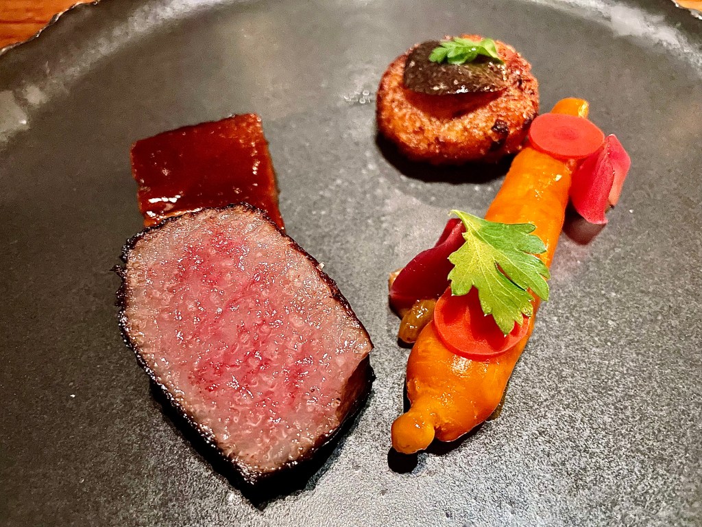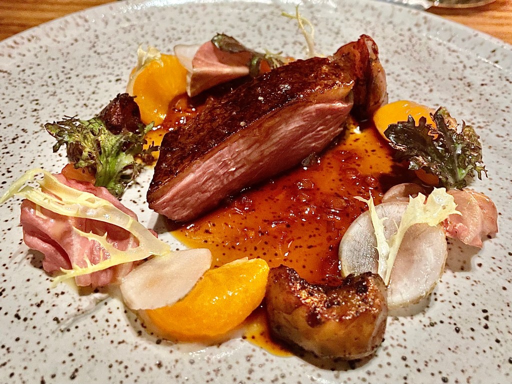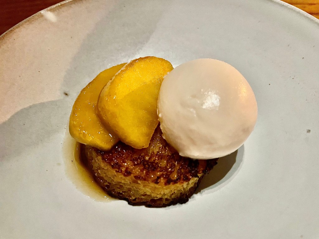 My favorite dish of the night was the winter squash fondue with chanterelles, kale and alba white truffle that worked exceptionally well with a red glass of Barolo from our wine pairing. The remaining savory dishes (dry-aged duck with citrus and sunchoke followed by Jewish brisket made of coal-roasted Wagyu accompanied by glazed carrot, latke and caramelized onion) were both above-average, too, in terms of the way the meats were prepared but again, they were not quite like the most unique dishes we hadn’t encountered at other fine-dining restaurants before. After a palate cleanser of poached bear, we did enjoy the French toast dessert with apple flambe and foie gras ice cream alongside a glass of Hungarian Tokaji.