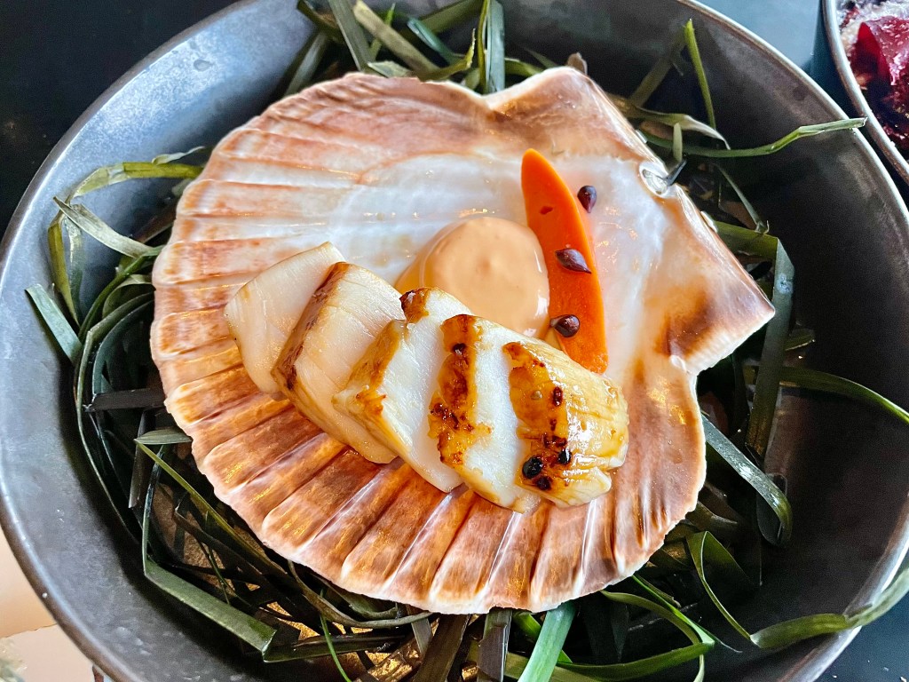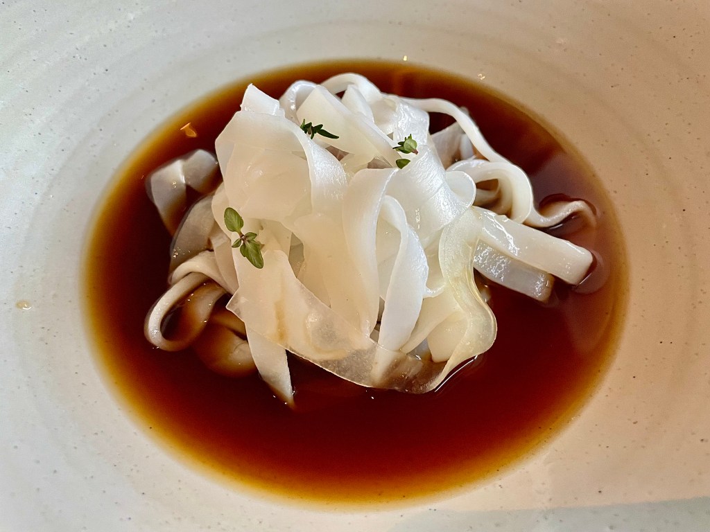 After starting with a few oysters (they were just OK, and I was surprised to find most of the four different types we tried were from France), we shared a number of small hot dishes which showcased the restaurant’s emphasis on fresh ingredients and solid execution. The grilled scallop from Norway with plum seed and onion flower kicked off our lunch on the right note, and Jun was very fond of the beetroot with radicchio that offered pleasantly crunchy texture. It’s hard to mess up steamed blue mussels, but based on the way we quickly finished a rather large bowl with herbs and double cream, the restaurant’s version here (the mussels were steamed in apple cider) was a hit. My favorite dish during our lunch was the thinly sliced squid in chicken dashi. The texture of the squid was spot on and worked beautifully with the aromatic broth; I wouldn’t have been surprised to see a dish like this at a seafood fine dining restaurant.