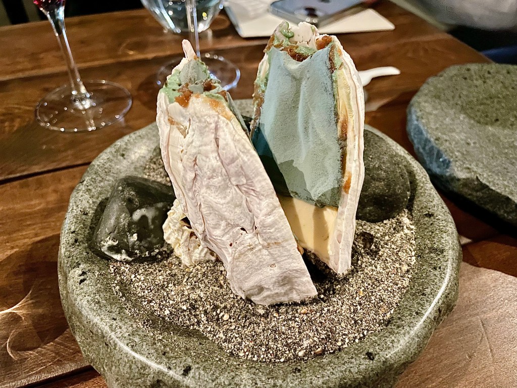 I am a huge fan of the Korean marinated raw crab dish called ganjang gejang, and didn’t certainly expect to see the kitchen bring out a playful take on it with Chilean crab called jaiba; of course it didn’t have the same flavor profile as the original dish from Korea, but I appreciated the ingenuity behind the Chilean version. Another dish I was very fond of was the conger (a type of eel) submerged in a broth of kollof roots and accompanied by summer flowers; we also got lobster cooked in seaweed bladder and grilled tomato on the side. If you want to see what a dish inspired by Van Gough would look like, Boragó will show a stunning dish of vegetables and flowers that would make you feel you are looking at an actual painting. The final savory course, Patagonian lamb, was quite tender, but Jun wished the meat’s seasoning could’ve been toned down a bit. The desserts at Boragó were no less impactful, starting with sea strawberry-based palate cleanser, followed by frozen seaweed ice cream inside a shell that you can open in half.