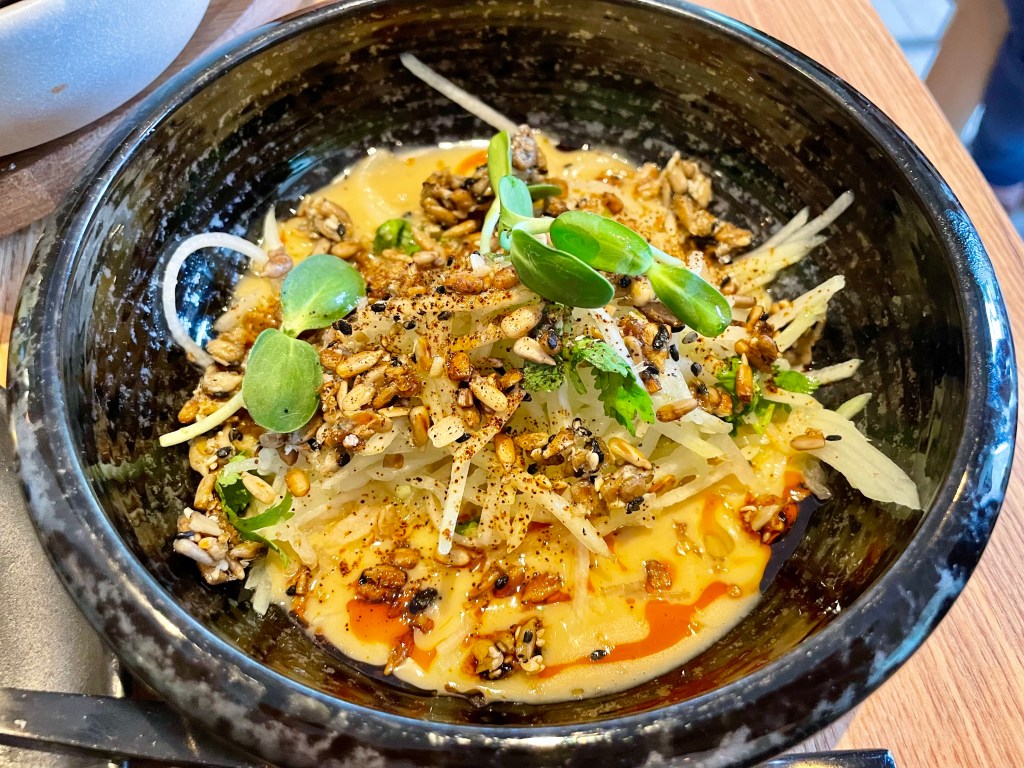 For Jun, the barometer of a great Mexican restaurant is always in how good the guacamole is, so we of course started our meal with guacamole and tostadas (at $17), accompanied by (with an extra $10 charge) a colorful spread of salsa, verde and habanero sauces as well as smoked papaya, shishito escabeche, pickled radish and piña. Despite the stunning presentation, the guacamole was solid but not the most amazing one we’d had. Jun, who is always fond of fiery Mexican sauce, was stunned that the habanero sauce was not even spicy at all! After our initial disappointment, the dishes that came after got progressively better, with the exception of prawns that were forgettable. For a successful meal at Pascual, focusing on vegetable dishes seems to be a winning strategy based on our experience. When I tried a scoop of chayote salad that arrived several minutes after the guacamole, I quickly forgot about the latter and really enjoyed the salad that was a perfect summer appetizer with its refreshing texture enhanced with sunflower seeds.