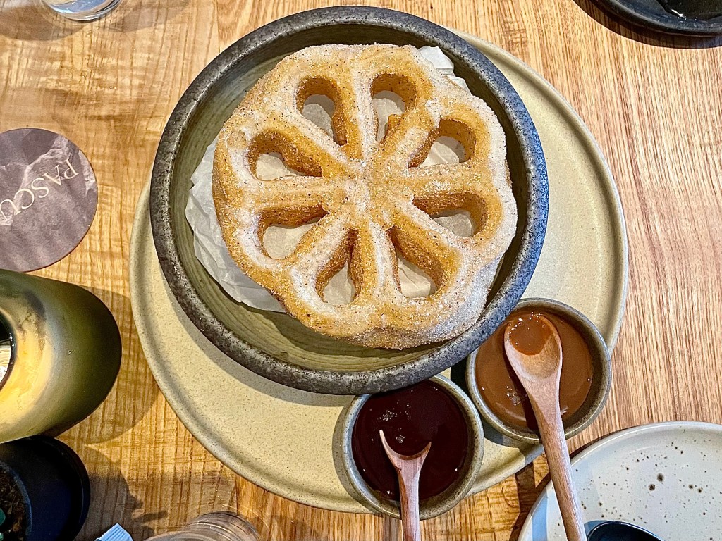 My favorite dish of the night was fideos negros (think Mexican version of thin noodles) with huitlacoche (a type of corn fungus) and mushrooms. The earthy flavor from the dish was quite outstanding and I only wished we had ordered two of these. For the main dish, we shared a giant lamb neck barbacoa accompanied by ayocote beans and salsa cruda that you can wrap into tortillas to create DIY tacos. The braised lamb neck was tasty and its texture soft; the only question was perhaps the price tag ($54) that seemed reflective of the overall inflationary environment of today. For dessert, Jun and I were fans of the off-menu flan, while bunuelo didn’t quite have the crunchy texture that we were expecting from the restaurant’s answer to churros.
