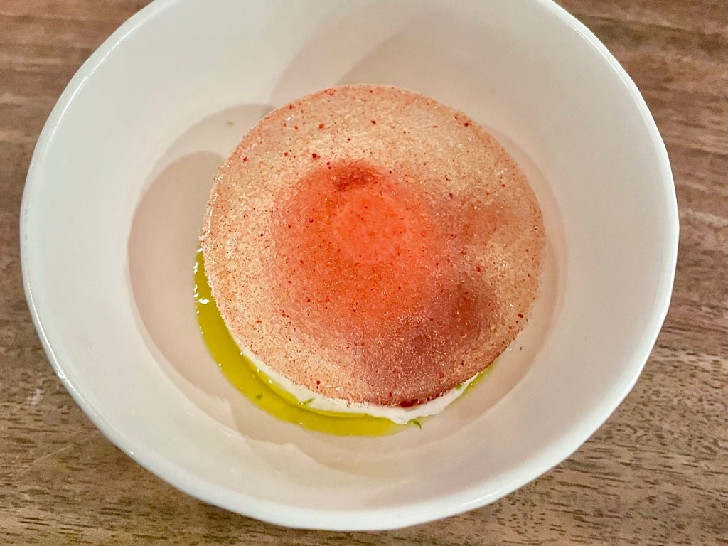As a Korean native, it has been truly heartwarming to see Korean restaurants make a huge impact in New York City’s fine dining scene, with trailblazers such as Atomix changing the way American diners view Korean cuisine. For my wife Jun and I, what really stood out from this tremendous moment in time is how talented Korean chefs keep pushing the boundary beyond what people around the world associate Korean cuisine with (such as Korean BBQ, bibimbap, etc.) and develop their own unique vision to tell the story of Korea’s rich culinary tradition. One restaurant that has done this very well in NYC is Jua, in which chef Hoyoung Kim (who worked at the OG Korean fine dining restaurant Jungsik) presents a wood-fired menu of modern Korean dishes. If you are judging Jungsik solely based on the number of dishes (seven, compared to a dozen or more courses) or the price point (it was $140 per person on our most recent visit, undoubtedly a bargain compared to $250+ you encounter at other fine dining places), the restaurant may seem like it has a more modest ambition. If, on the other hand, you evaluate the restaurant’s worth based on the consistently amazing food coming out from the kitchen, you will soon discover that Jua is the real deal. We first visited the restaurant in fall 2020 (that’s right, in the middle of the pandemic), and a few more times since then (the most recent one on our trip to NYC last month), and we have never had a bad meal at Jua.