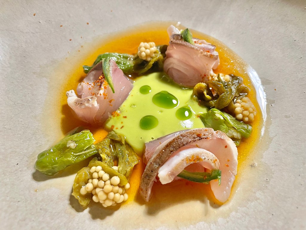 Besta has two tasting menu options, both below €100 per person and seasonally changing depending on the availability of ingredients at the moment. We opted for the shorter Degustación menu consisting of three snacks, four savory courses and two desserts. The high level of ingredients’ quality was evident from the beginning, with the way Jun (who is more sensitive to shellfish freshness than I am) enjoying the giant clams and razor clams (both from Galicia) without hesitation; I was particularly a fan of the latter that came with Meunier sauce made with Codium seaweed that was just so on point with a glace of white wine that I ordered. The best dish from the night was the third snack, a simple-looking tomato tartare and homemade bottarga on top of pumpkin seeds cracker. If there is a miniature version of pizza that I could eat every single day, this would be it, with each bite so delightful that made me wonder if this restaurant should get into a pizza business.