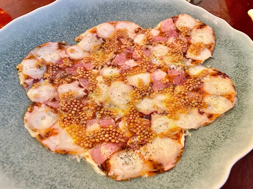 Whenever my wife Jun and I visit New York City, I habitually look up reservation websites like Resy to check for available tables on some of the hottest restaurants in the city. I am as upset as anyone that Resy has an inferior system that allows opportunistic vultures to use bots that snap all the reservations right around the time the reservation window opens and to sell them at unconscionable mark-ups in the secondary markets, preventing us from checking out places like Tatiana (at least chef Kwame Onwuachi decided to open a new restaurant in DC), Torrisi (I’ve only been to the first iteration of the restaurant back in 2013) and Don Angie (an impossible restaurant to book even before the recent Resy shenanigans). Speaking to Don Angie, the wife-husband duo Angie Rito and Scott Tacinelli decided to open a second restaurant focusing on Italian seafood. My worry that San Sabino would be just as difficult to get a reservation turned out to be true, and the restaurant was booked solid during the time we were visiting NYC in September. My experience with the Notify waitlist function with Resy has been more unsuccessful than not but I figured I would at least give it a shot for a Sunday brunch with another couple before we head down to our home; the evening before, while we were walking around West Village, I got a notification that a table for four at San Sabino had opened up! I was beyond excited and promptly booked the reservation. I’m glad I was looking at my phone on that very fortuitous moment because our meal at San Sabino was quite good.
