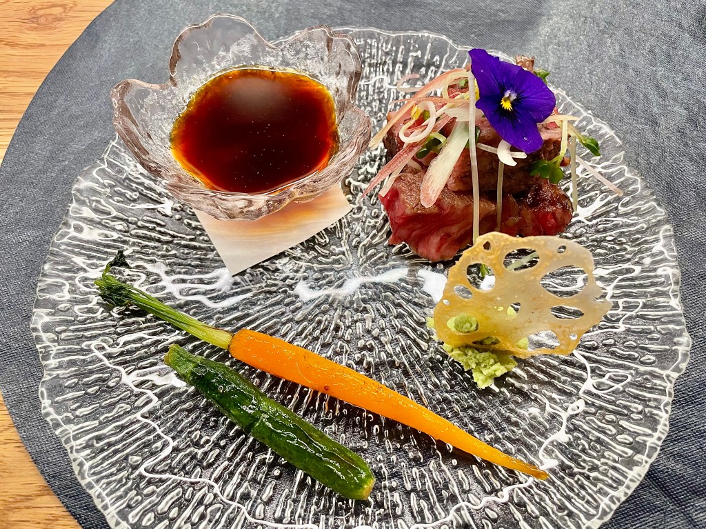DC has no shortage of Japanese restaurants but it is rare to see a Kappo-style tasting menu focusing on the famed Japanese wagyu beef. Kappo in the Palisades neighborhood, started by chef Minoru Ogawa in partnership with co-owner Ari Wilder, had long been on my list of new DC restaurants and it was only recently this month that my wife Jun and I finally got around to visiting. It was on a very cold Saturday after heavy snows during the weekdays. As we were led to the cozy dining space with chef Ogawa meticulously working behind the counter, I felt there was something special about this restaurant. Our dinner at Kappo indeed turned out to be a memorable one.