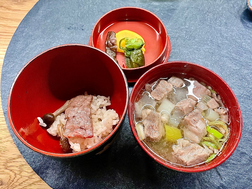 After a palate cleanser of yuzu shiso lemon granita, we were served the highlight of the night. I had eaten some really outstanding wagyu beef dishes in my wife, but what Kappo brought in its steak dish was truly remarkable. The texture of the wagyu, which came with carrot and zucchini on the side, was just heavenly, melting in my mouth from impeccable marbling with no tough parts anywhere! My only regret is that the portion came a little smaller with around half a dozen cubes of the steak, which made each bite that much more precious. The last savory course was a soulful combination of rice dish and miso soup; I was particularly fond of the rich flavor from the soup with generous amount of beef inside. For dessert, we had red miso-caramel panna cotta and judging from how quickly Jun was eating it, it marked a delightful end to our meal.