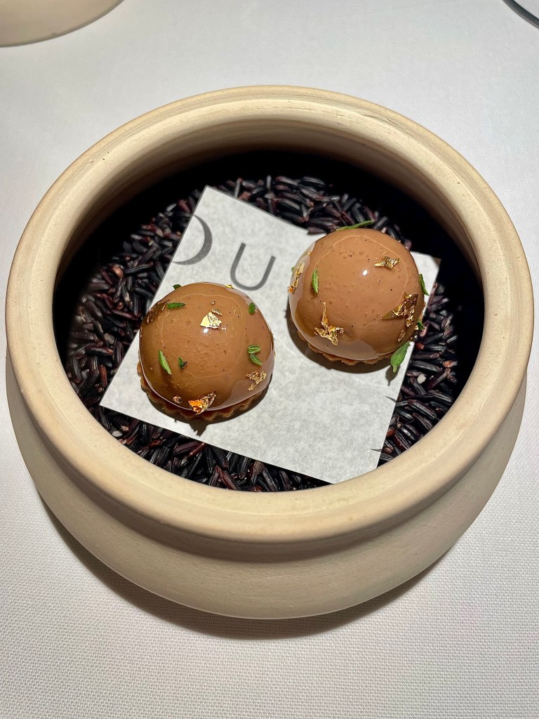 I discovered one not-insignificant blunder (from my end as well as the restaurant) toward the end of our meal. I booked our dinner for a longer and more expensive Epicurean Menu, but it turned out we were served the other Odyssey Menu instead. Would a few additional dishes from the longer menu have dramatically changed our experience? It’s hard to say. Overall, the presentation and execution of the dishes that came to us was of comparable quality to other fine-dining restaurants. All of the dishes following the duck liver dome snack had separate names attached to them; I did, however, have trouble connecting each dish to the significance behind its assigned name. For “Freshness,” we had delicious Scottish salmon gravlax with horseradish panna cotta as well as carrot and tamarind broth. Sure, the salmon was indeed fresh, but did adding all these other ingredients add to that freshness? Then came “Modesty,” which came with glazed sweetbreads, gnocchi and Diablo crème. The flavor of the sweetbreads and gnocchi was anything but modest, even though I still enjoyed it for its creative mix of ingredients. For the palate cleanser, named “Wash Your Mouth Out With Soap,” we got the refreshing apple and tamarind sorbet in the shape of an expletive. When you are in South Africa, you have to try some springbok (a type of antelope common in southern Africa) meat, and Dusk’s version of pepper spiced venison loin with charred and braised stuffed cabbage and polenta, named “Weekly Cut,” was a nice fine dining expression of how the tender meat should be prepared. For dessert, we were served “Nostalgia” in the form of banana ice cream, semifreddo, peanut ganache and cardamom cake; it was another solid dish, but nothing quite groundbreaking and I had trouble finding any elements of nostalgia from it.