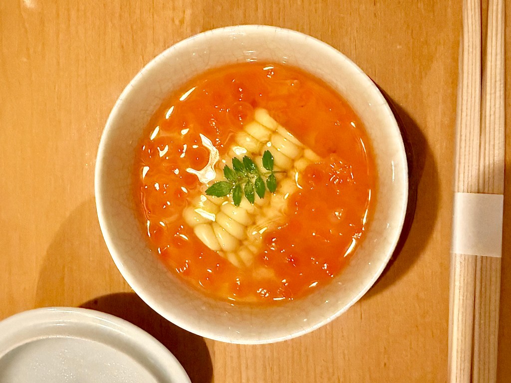 The nigiris coming from chef Daniel’s magical touch were also of consistently high quality; Jun and I were especially impressed with how each piece wasn’t overly seasoned to maximize the texture of the fish. Some of the standout pieces wowed us with ingredients we had not encountered before, like the baby green onions that complemented beautifully with spotted skipjack tuna, or the seared flounder fin that was exceptional for its textural complexity. I certainly don’t recall having many langoustine nigiri at sushi restaurants before, and after chef Daniel brought one (from New Zealand) with wonderfully crunchy texture, I wondered why other sushi restaurants don’t try this ingredient more often. After a few more nigiri pieces and an aromatic soup of tofu, yuzu and chrysanthemum came the highlight of our dinner, a stone pot rice with female snow crab inside. The rice umami of this rice dish was so irresistible that even though I was pretty full by then, I felt compelled to ask for a second bowl. Even the tamago from Sushi Sonagi is not an ordinary egg custard, with miso butter that added an entirely different dimension to the dish.