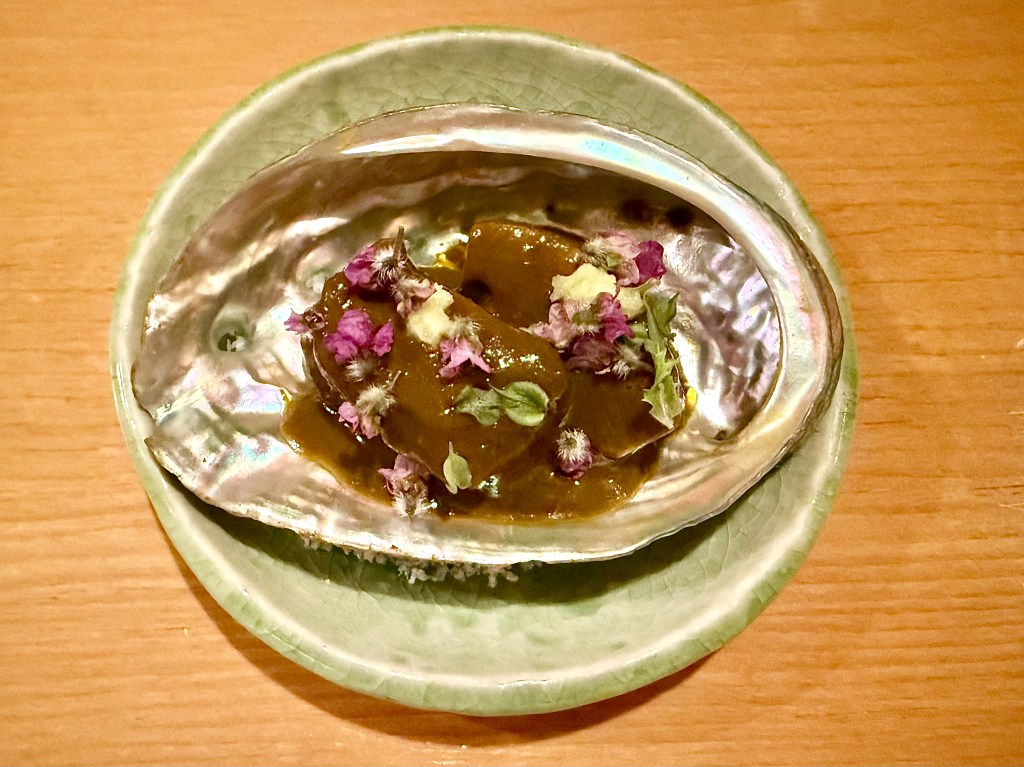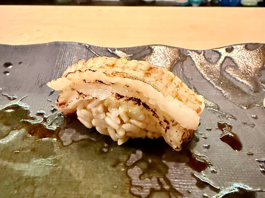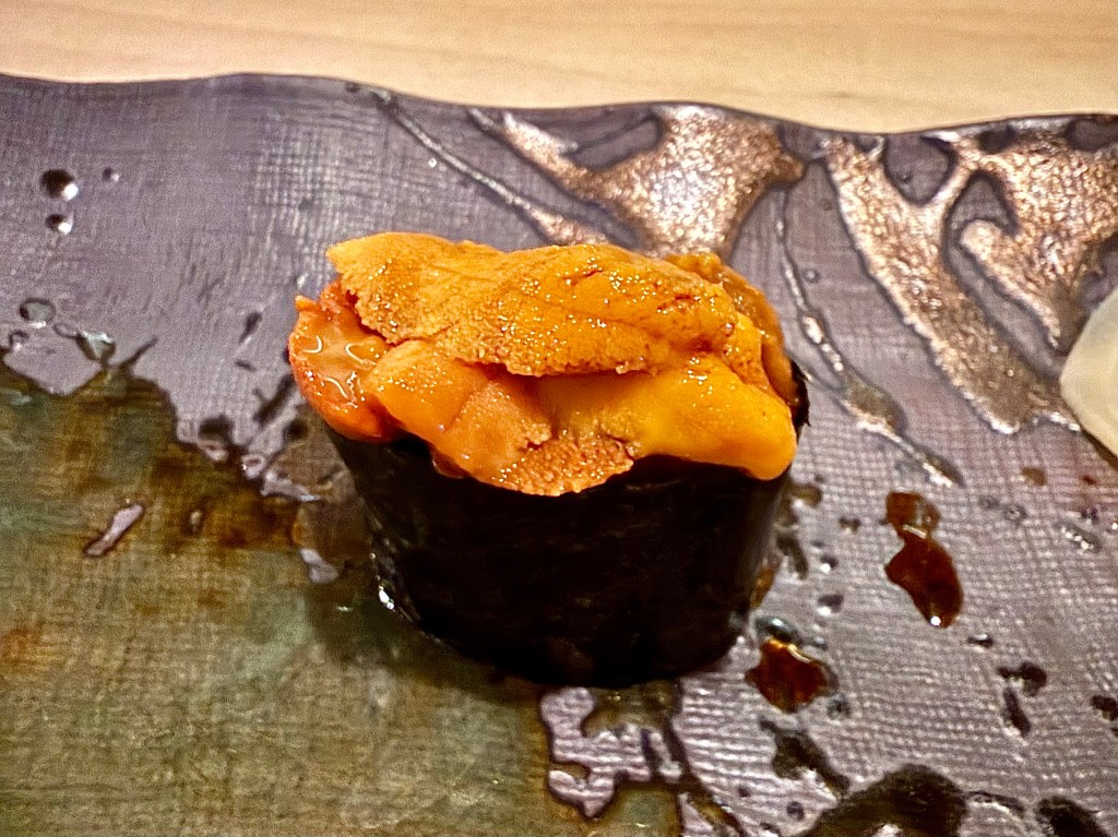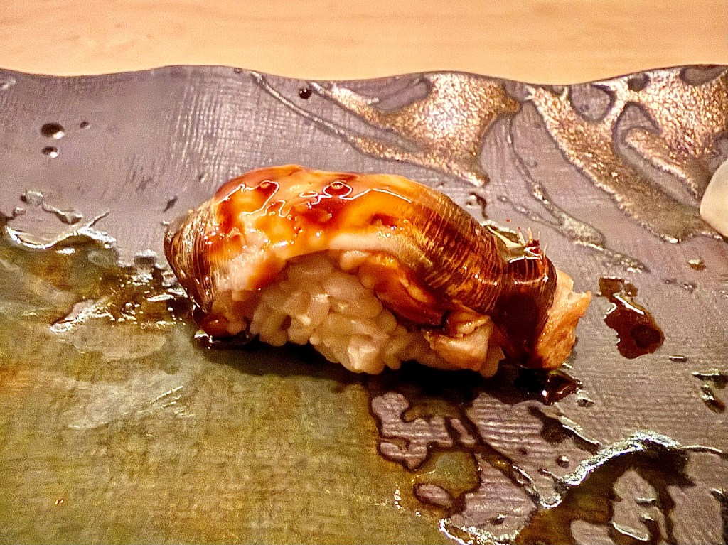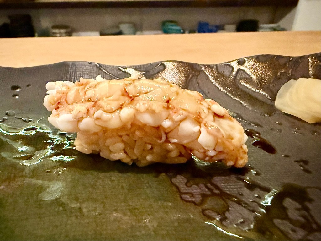 The chef Daniel Son, a second-generation chef, is in charge of all of the dishes at Sushi Sonagi, which has a single counter table with two shifts per night. What really stood out about the omakase at Sushi Sonagi (the menu costs $250 per person) is chef Daniel’s openness to experimenting with ingredients not typically used at a sushi restaurant, as well as the overall balance in flavor of all the dishes. The opening dishes featured a super delicious chawanmushi with snow crab and (unexpectedly) sweet corn. The fried green eyes fish was also another delightful item on the course, as well the mackerel sandwich that Jun really enjoyed even though mackerel is not her favorite fish. My two favorite dishes before the nigiri section were the black abalone (sourced from Korea’s Jeju Island) with liver sauce – this is one delicacy that I won’t stop thinking about for a while – and monkfish liver (which had a bit of wasabi on top to a surprising effect) that would’ve held its own against ankimo at other top-end sushi restaurants.