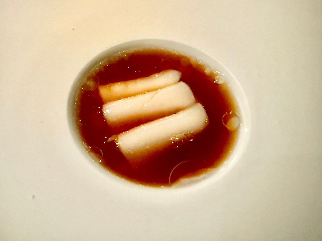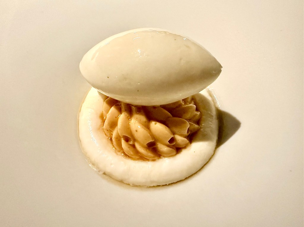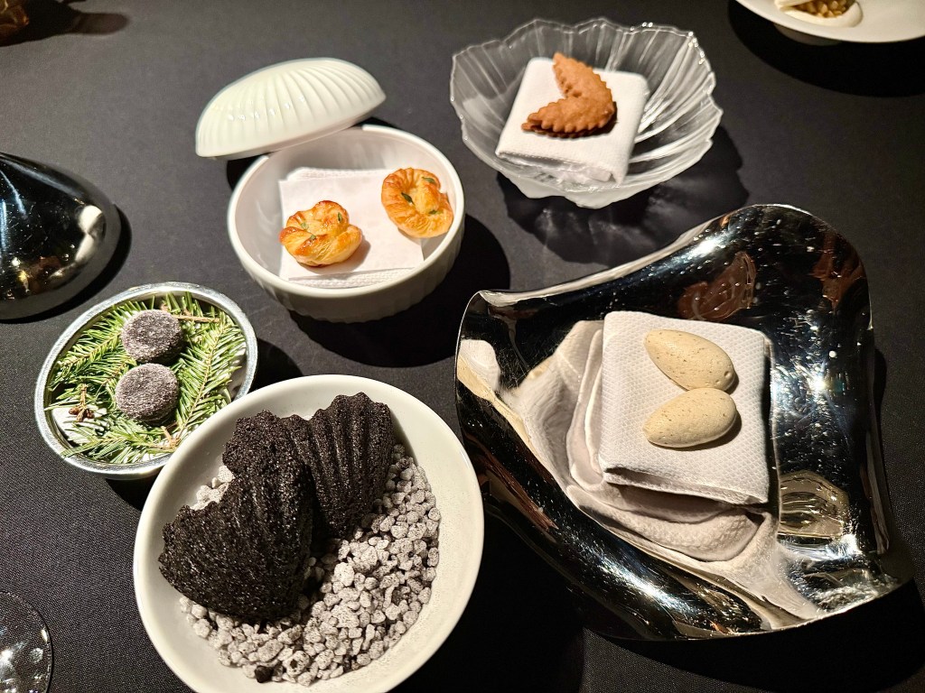 The grilled tail of langoustine from Norway with red gooseberry, another longtime stalwart in Aska’s menu over the past few years, was as good as we had remembered; I won’t hesitate to say this langoustine is probably at least one of my top three in the world, with flawless texture. When it comes to texture, you also can’t beat the hake. We have seen slightly different variations of this fish over time, and this time the beautifully plated dish with caviar and sauce made with Swedish dark beer and flowering dill was no less exquisite. My favorite dish of the night was venison with chanterelles and wild herbs. I think restaurants could certainly use more venison in their menus, especially when a restaurant like Aska comes out with this wonderfully tender meat that won’t make you miss Wagyu beef. The desserts at Aska also displayed the same level of precision and high execution from the savory dishes. Another new dish of the night, a pre-dessert dish of thinly sliced pear with black cardamom and brown butter quickly won us over, and the main dessert of caramelized whey and milk sorbet was also delightful without overwhelmingly sweet.